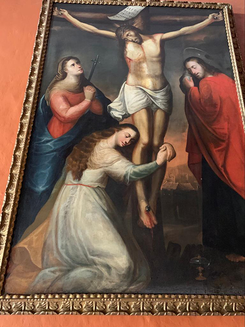A pro mě osobně všudypřítomná Máří Magdaléna. Dlouhodobě mě fascinuje, že ať jedu kamkoli, od Zanzibaru, přes Evropu až po Jižní Ameriku, všude na významném místě u oltářů nacházím její podobiznu. V jedné z hlavních katedrál, na hlavním náměstí v Cusco, je krásná malba, na které se na sebe milostně dívají s Ježíšem na kříži, a ta mě dojala úplně nejvíc. Těm, kdo jsou otevřeni interpretaci příběhu o tom, že jejich vztah nemusel být jen na úrovni učitele a žákyně nebo Mesiáš a následovnice, může tento obraz poskytnout obrovskou inspiraci. Bohužel v katedrále nebylo možno fotografovat.